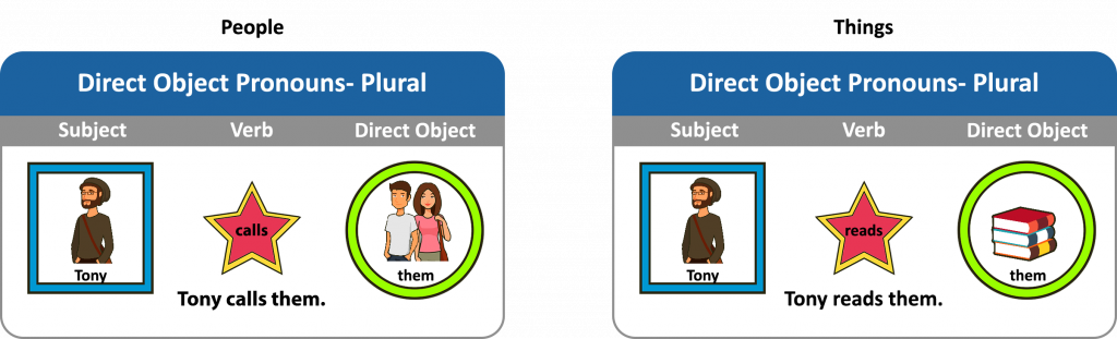 Tony Calls Ben and Anna. In this example, the names “Ben” and “Anna” are replaced with a pronoun “them”.