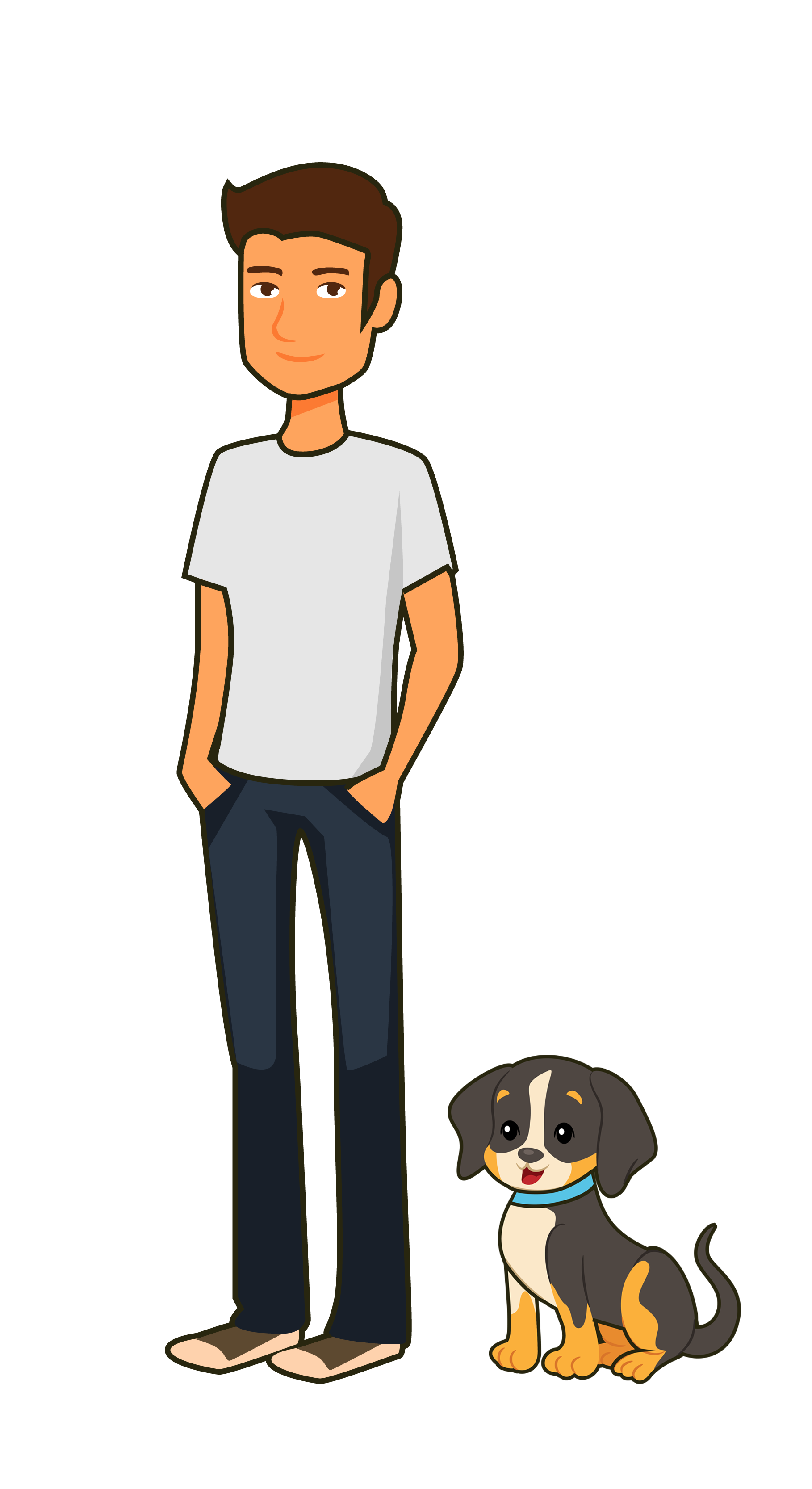 The boy plays with the dog.